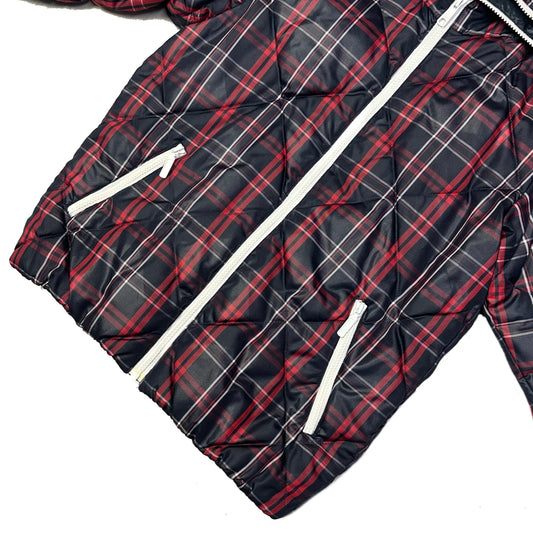Takeo Kikuchi Diamond Stitch Plaid Puffer Jacket In Navy & Red (M)